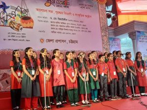 প্রতিবারের ন্যায় এবারও চট্টগ্রাম জেলা প্রশাসনের আয়োজনে জেলা শিল্পকলা একাডেমি প্রাঙ্গনে জাতি, ধর্ম, বর্ণ নির্বিশেষে সকলের অংশগ্রহণে জাঁকজমকপূর্ণভাবে উদযাপন করা হয়েছে শুভ নববর্ষ পহেলা বৈশাখ-১৪৩২ বঙ্গাব্দ। আজ (১৪ এপ্রিল) সোমবার সকাল ৮টায় জেলা শিল্পকলা একাডেমি প্রাঙ্গনে জাতীয় সংগীত পরবর্তী পহেলা বৈশাখের বর্ণাঢ্য আনন্দ শোভাযাত্রার শুভ উদ্বোধন করেন অনুষ্ঠানের প্রধান অতিথি বিভাগীয় কমিশনার ড. মোঃ জিয়াউদ্দীন।